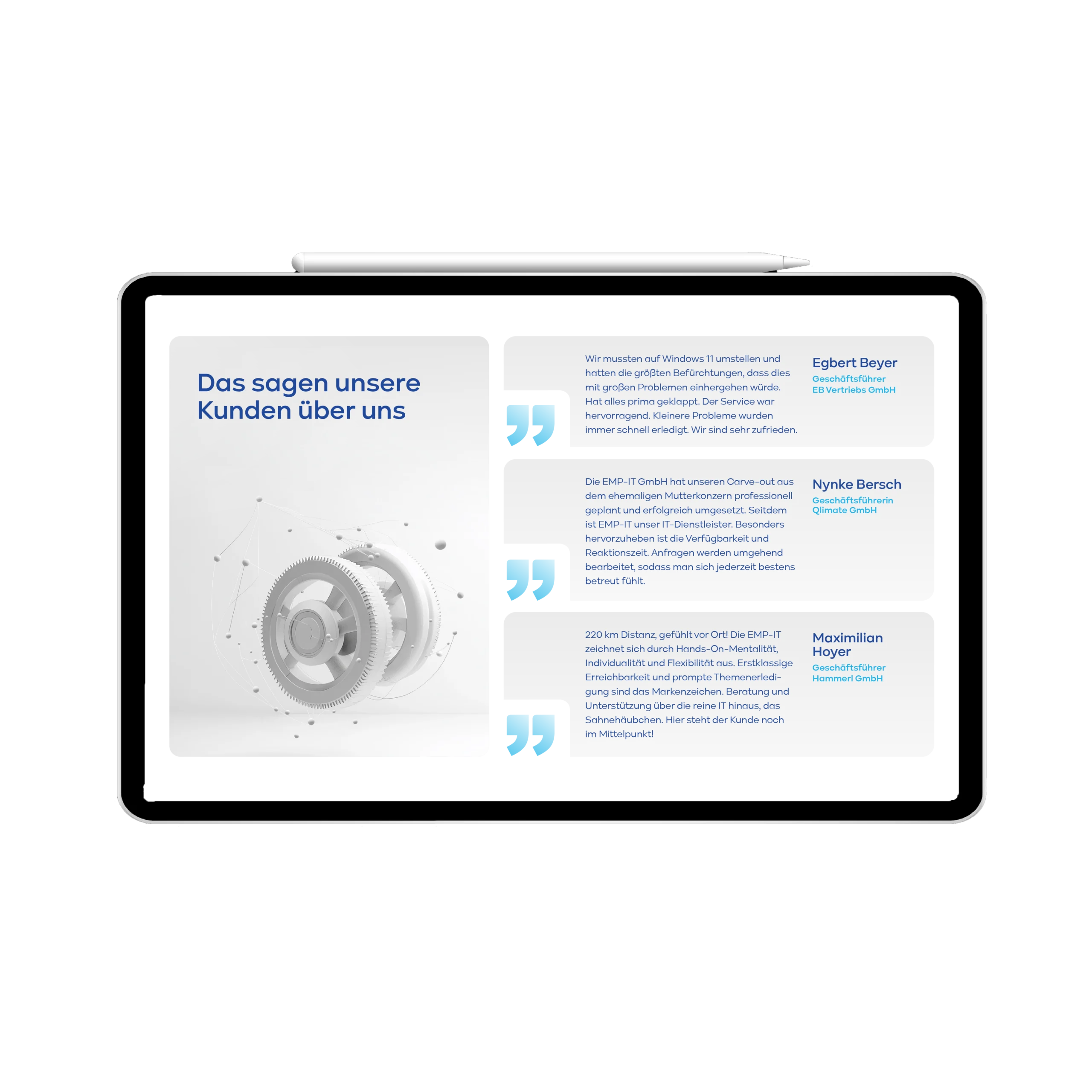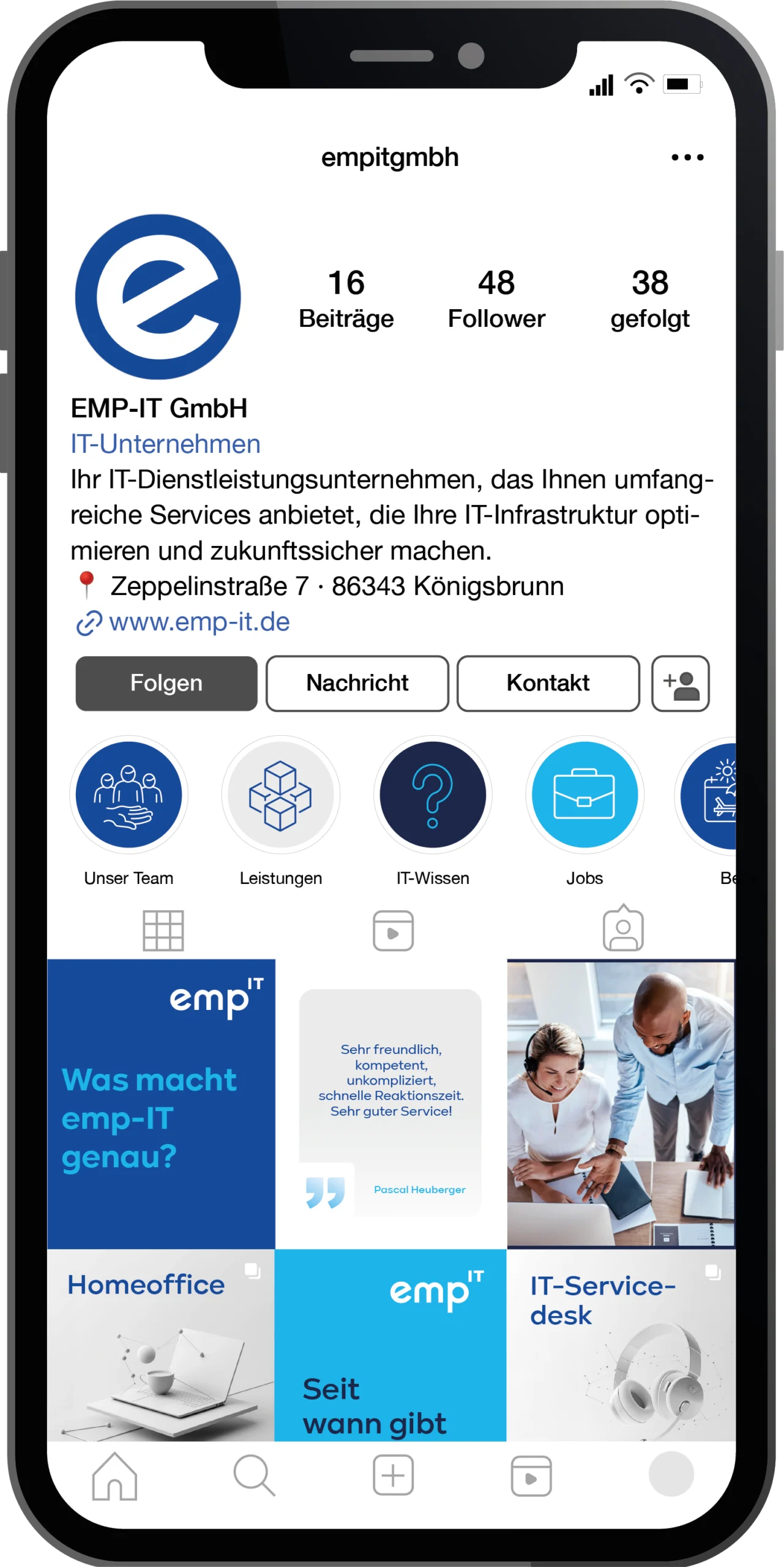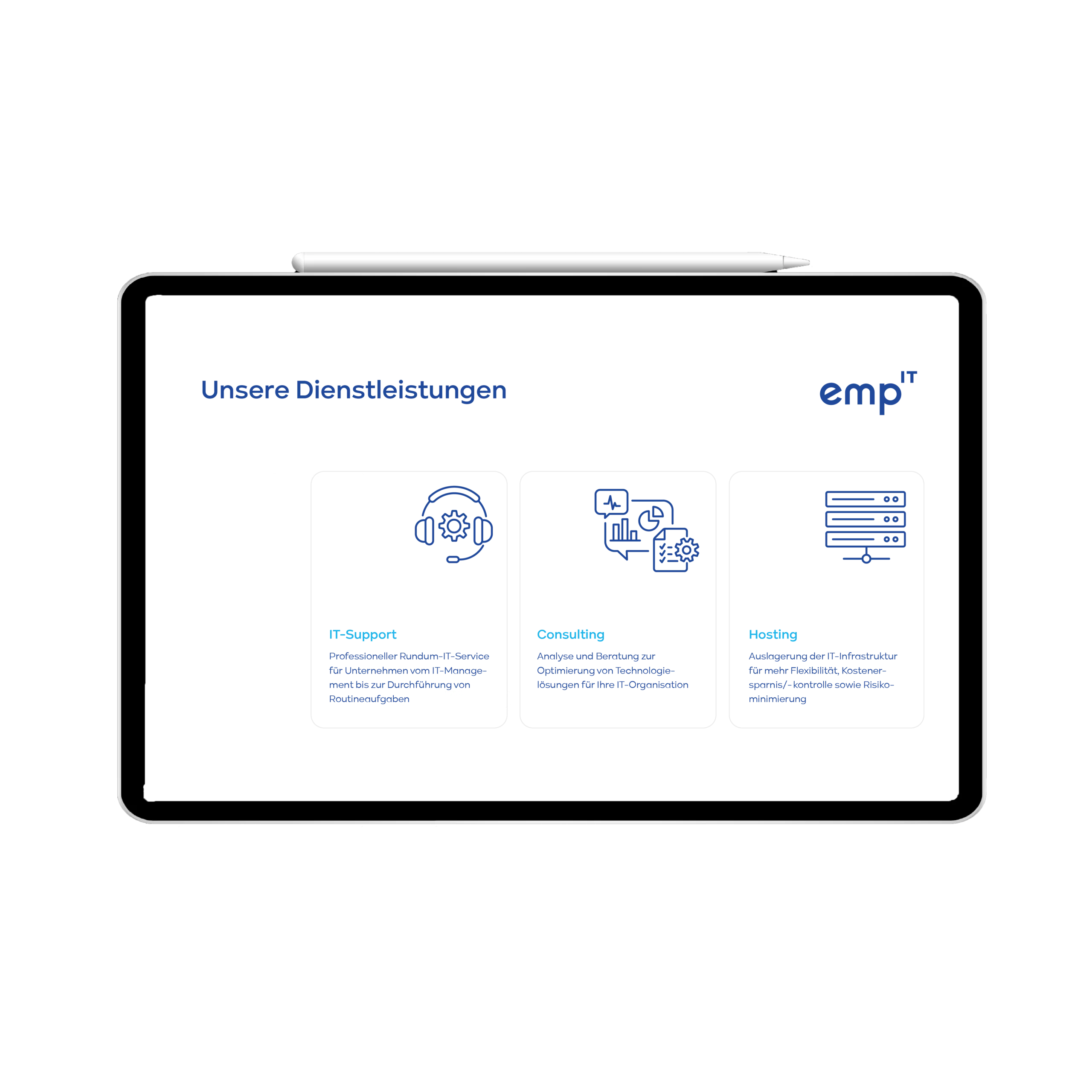 Durch eine durchdachte Content-Strategie, ein konsistentes Designsystem und eine authentische Kommunikationslinie wird EMP IT nun als innovative und zugleich nahbare IT-Marke erlebbar. Das Ergebnis ist ein einheitlicher digitaler Auftritt, der die technische Kompetenz, Verlässlichkeit und Dynamik von EMP IT in jedem Kanal widerspiegelt.
