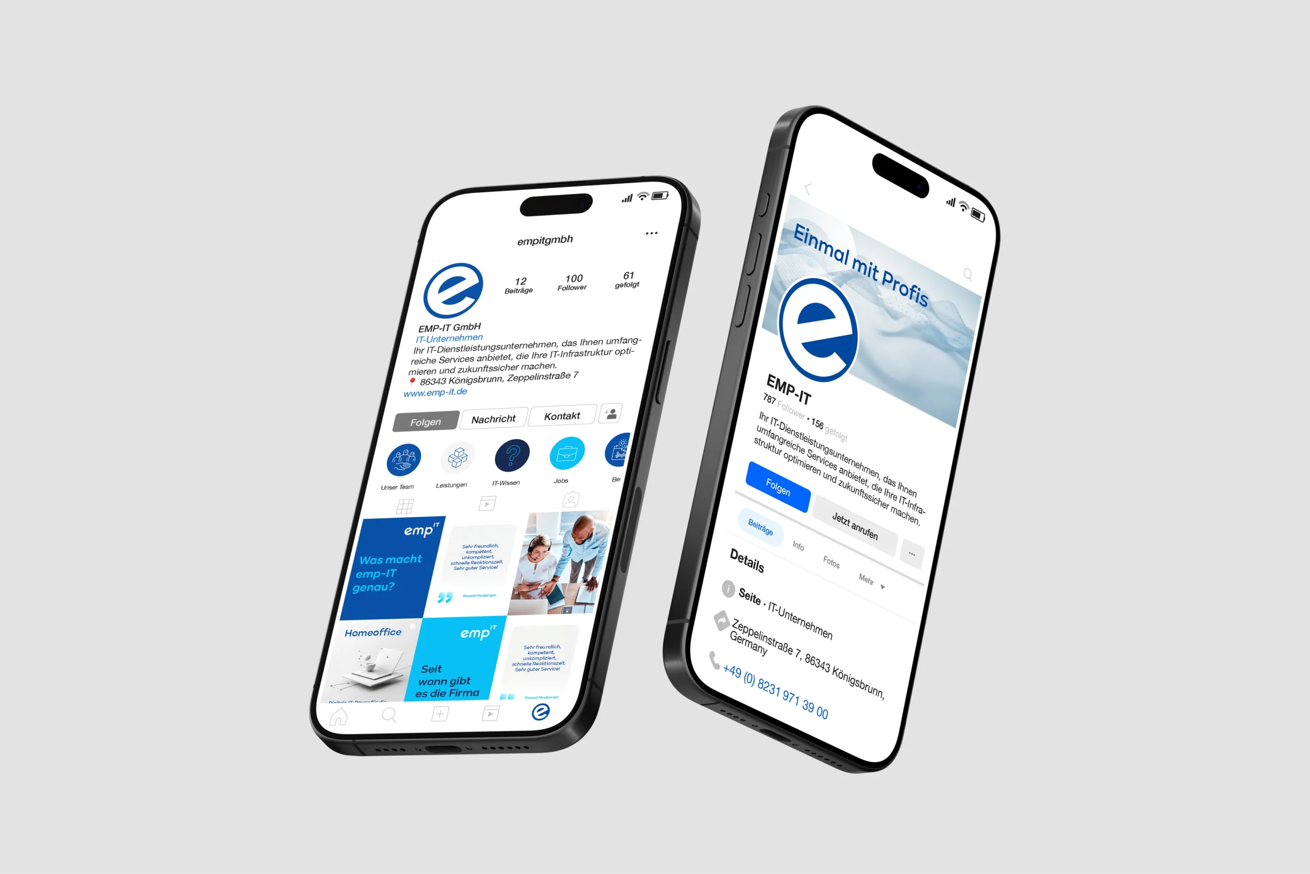 Mit EMP IT haben wir ein umfassendes Rebranding umgesetzt, das die Marke in einem neuen, modernen Licht erscheinen lässt. Im Zentrum stand dabei der komplette Relaunch der Website, inklusive einer überarbeiteten Markenarchitektur und eines zeitgemäßen, klaren Designs. Ergänzend dazu wurden Logo und visuelle Identität weiterentwickelt und die Social-Media-Präsenz ausgebaut.